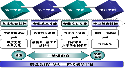 通过完成保障运行体系研究寻找突破点,招生培养机制研究与实践为着眼点,课程体系研究与实践为着力点,双主体平台研究与实践为着重点,质量监控评价体系研究形成创新点,实现专业现代学徒制的“双主体”合作育人机制并在红光锅炉集团等企业实行。