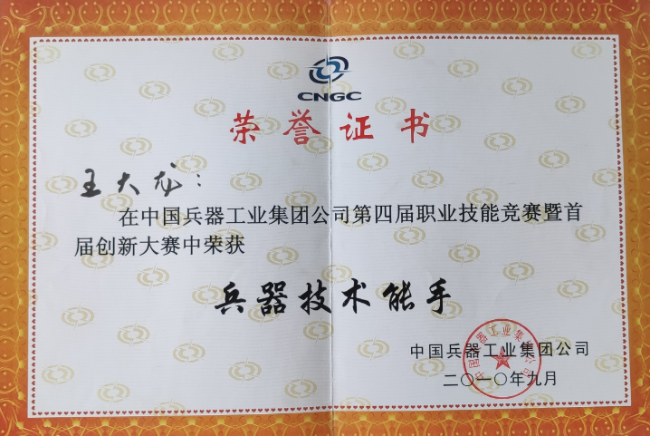 从学校毕业分配到公司,王大龙开启了在企业的成长之路,他秉承着在校期间养成的良好习惯和职业素养,始终坚持刻苦学习、勤于练习、甘于奉献、忠于职责,脚踏实地的干好每一项工作。入职不久,他就凭着不怕吃苦、踏实肯学的工作态度,被选为公司出口国外的硝酸储罐生产项目焊工班成员之一,跟着师傅,他虚心请教学习、休息时间潜心钻研,在项目的完成过程中,他的技能水平得到了大幅度的提升。此后,在国家重视技能人才、公司崇尚技能的支持下,他利用各种闲暇时间提升技能水平、丰富理论知识,不断地磨砺技艺。2010年在哈尔滨建成集团举办的技能竞赛中,成功脱颖而出,取得焊接组第一名,获得代表公司参加中国兵器集团技能大赛的资格,并最终荣获“兵器技术能手”称号;2011年被国务院国有资产监督管理委员会授予“中央企业技术能手”荣誉称号,此后,多次参加公司、行业举办的技能竞赛并取得了优异的成绩;曾荣获嘉克杯国际焊接技能大赛“优秀选手”,“哈南十大工匠”等荣誉称号,多次被公司评为“劳动模范”。