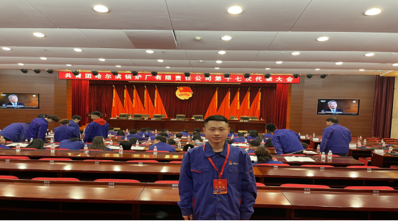 2023年3月17日,共青团哈尔滨锅炉厂有限责任公司第十七次代表大会在科技楼报告厅隆重开幕。城市热能应用技术专业2022届优秀毕业生苑国庆作为哈锅公司第十七次团代会代表参加本次大会。