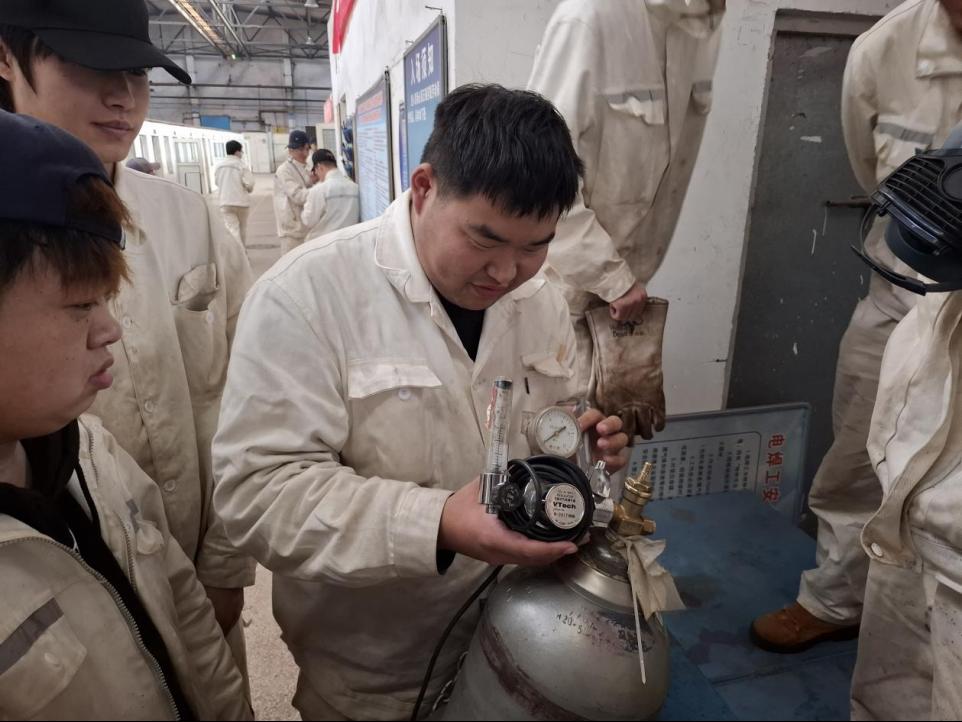 本次活动紧密对接企业前沿,学生亲临一线深度领悟氩弧焊技术的精髓与价值。在舒裕老师的悉心带领下,学生们深入探究了氩弧焊设备的工作原理,了解了氩弧焊焊机的送丝技巧和气瓶的安全使用规范,学生们的动手实践能力与安全意识都得到了进一步提升。学生们在参观舒裕老师的创新发展工作室时,还亲身体验并深刻领悟了“哈锅”深厚的文化底蕴与严密的制度体系,这一经历丰富了学生的知识视野,也大大提高了学生们的思想觉悟。