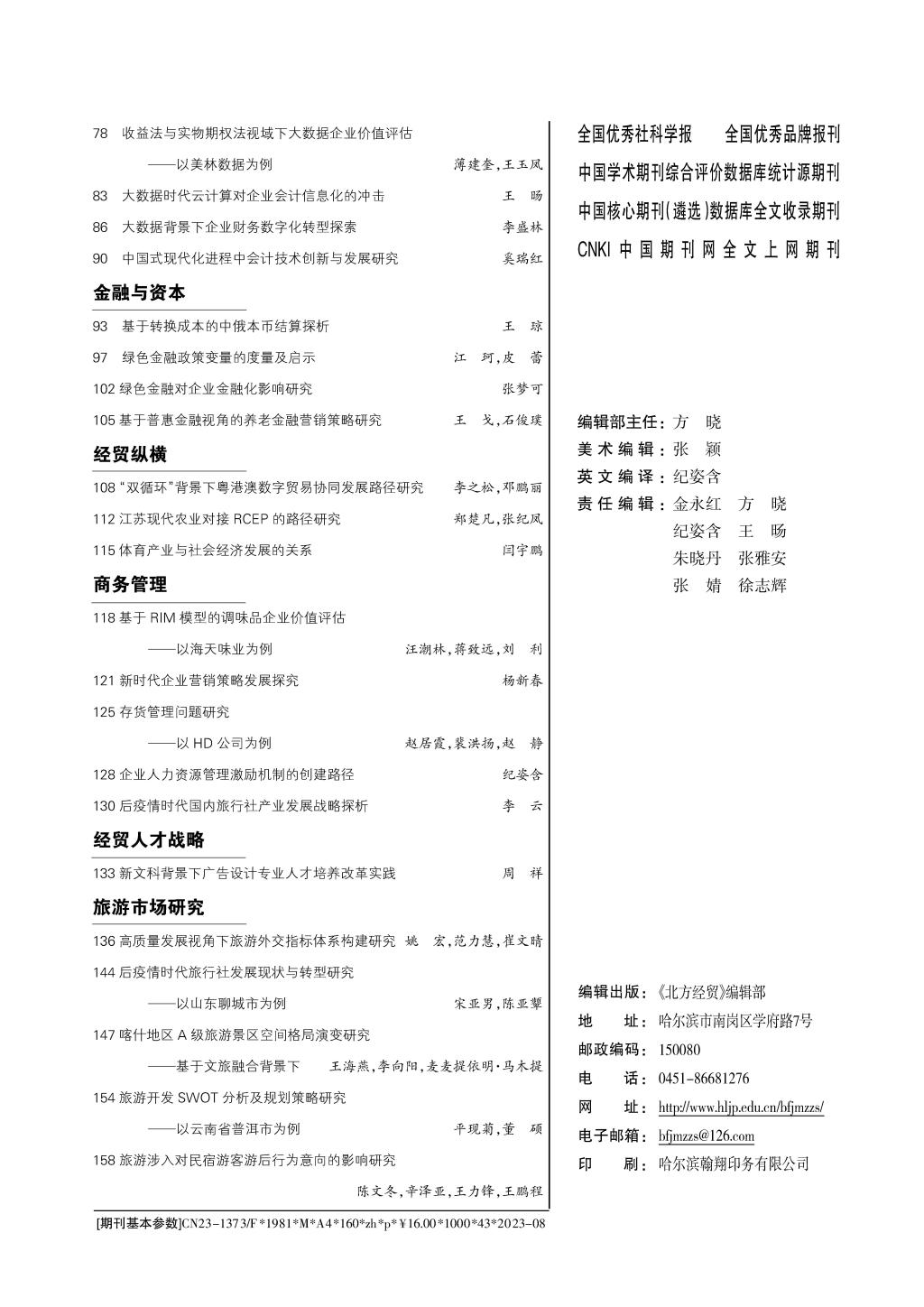 版权所有:北方经贸杂志社 地址:黑龙江省哈尔滨市南岗区学府路5号 邮编150080 电话:0451-86681276 86646778 邮箱:bfjmzzs@126.com