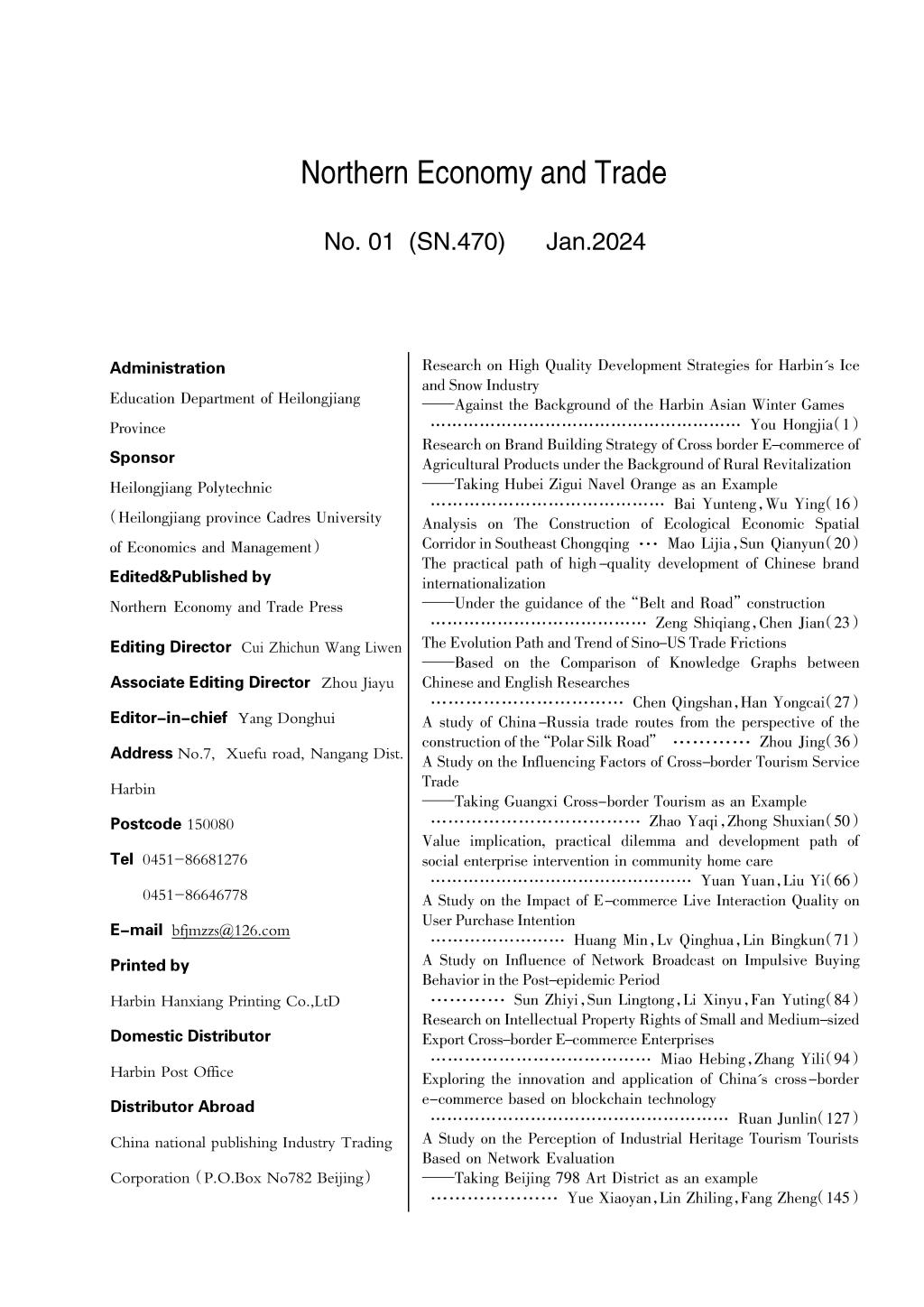版权所有:北方经贸杂志社 地址:黑龙江省哈尔滨市南岗区学府路5号 邮编150080 电话:0451-86681276 86646778 邮箱:bfjmzzs@126.com