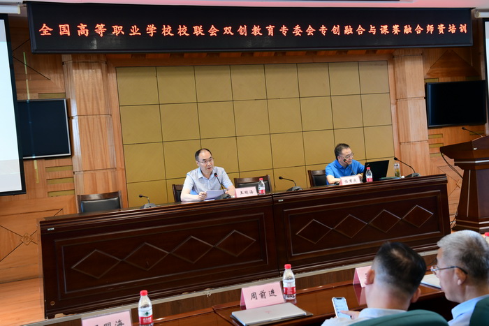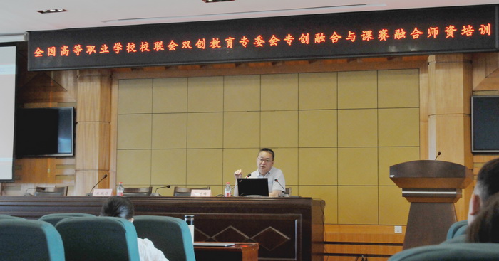 本次师资培训紧扣专创融合与课赛融合主题,在课程设置、培训互动、座谈选题等方面经过精心策划。全国高等职业学校校联会秘书长任君庆教授在《高职院校高质量发展与高水平专业群课程建设》专题培训中,聚焦国家高水平专业(群)建设特征和要求,从引领职业教育改革发展和人才培养、支撑国家战略和地方经济社会发展方面,推动形成一批国家层面支撑职业教育高质量发展的政策、制度、标准等方面存在的短板进行了系统讲解。任教授在培训中阐述了中国式现代化需要职业教育提供强有力的技术技能人才支撑,职业教育要从体制机制特色、社会职能特色、发展环境特色、民族文化特色等方面适应中国式现代化建设的需要。