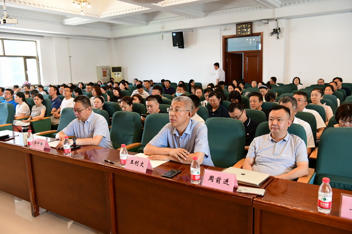 ▲党委书记崔治春、校长王利文出席师资培训开班式并与专家、全体学员合影留念