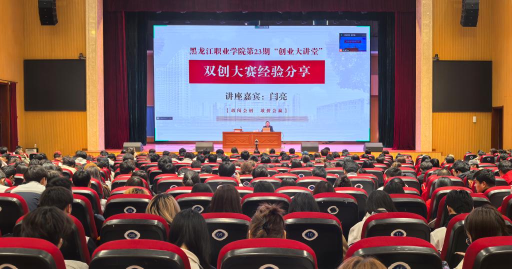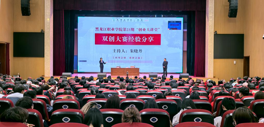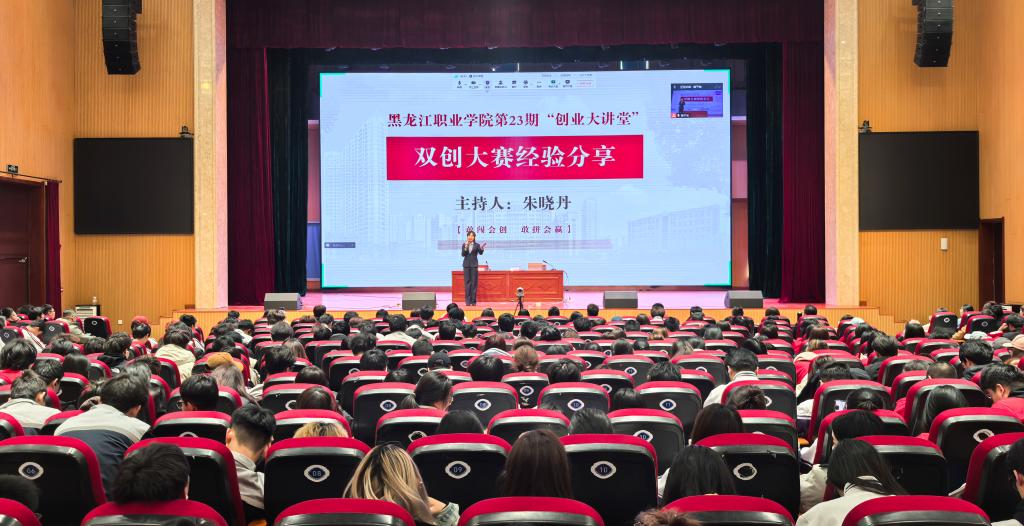 ▲朱晓丹主持学校第23期“创业大讲堂”