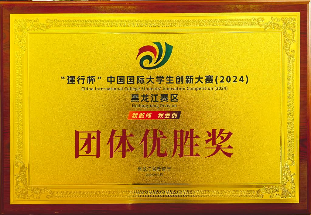 ▲学校荣获建行杯”中国国际大学生创新大赛(2024)黑龙江赛区“优秀组织奖”和“团体优胜奖”