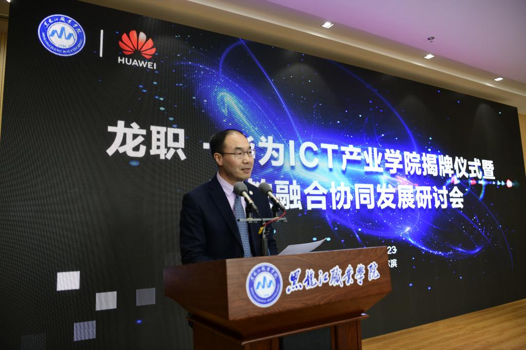 落实全国职业教育大会精神,深化校企合作协同育人。2020年学校与华为公司达成全面深化校企合作协议,双方共建华为ICT产业学院,计划共建大数据、物联网、云计算、人工智能组成的现代信息技术专业群,以华为认证课程为核心,运用“龙职”教学改革成果,开展信息技术应用创新研究与实践,创新开发信息技术专业群课程体系,利用华为企业资源,面向特定区域目标产业共同开发匹配的“信息技术+X产业”教学资源库,建设一地多点国际化产教融合基地,为东北培养复合型数字人才。