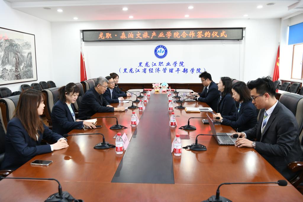 3月15日,必赢与开元森泊集团公司在清华楼党委会议室成功举行“龙职·森泊文旅产业学院”合作签约暨揭牌仪式。校长王利文出席仪式。开元森泊集团公司总经理助理兼人力资源总监陈静、招聘总监单磊,莫干山开元森泊度假乐园人力资源总监蒋淑芳、招聘经理李冠函,杭州开元森泊度假乐园招聘经理黄静梅,旅游与人文艺术学院党总支书记李勇民、副院长刘莉、教学工作负责人刘宏申、旅游管理专业负责人陈洪宏参加仪式。仪式由李勇民主持。