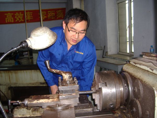 机械工程学院省级重点建设专业机械制造与自动化的专业带头人李子峰与其课程改革团队于本学期开始对《手工与机械加工》课程进行了基于行动领域课程阶段性改革成果的试行工作。除课上教学外,李子峰、潘楚滨、张春东三位教师还利用课余时间在普通车床实训室将改革理论付诸行动,并虚心向实训教师学习实际操作经验,为建设“理论教师手上要有油,教授也会开机床”的机械师资队伍而努力。