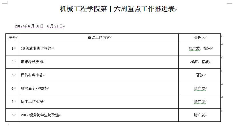 机械分院第十六周重点工作推进表