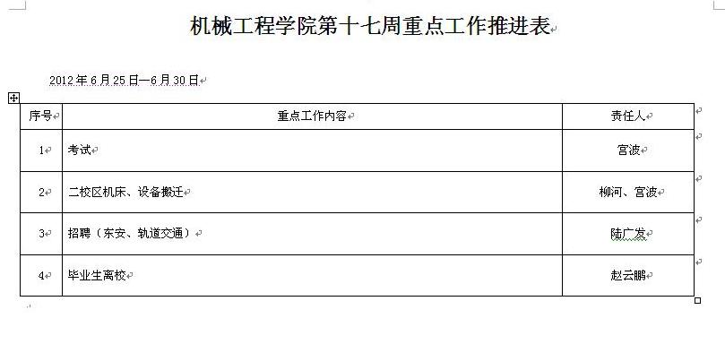 机械分院第十七周重点工作推进表