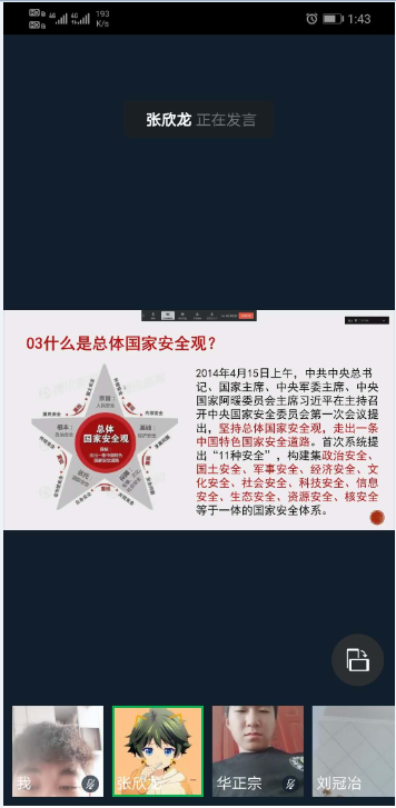 2020年4月15日是第5个全民国家安全教育日,机械工程学院响应教育部及学校号召组织在校学生参加千万学生同上一堂国家安全教育课活动,并观看由范维澄院士主讲的视频课。组织学生通过钉钉、QQ、微信等工具召开国家安全日主题教育班会。