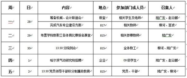 机械工程学院第十三周重点工作推进表