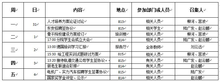 机械工程学院第九周重点工作推进表