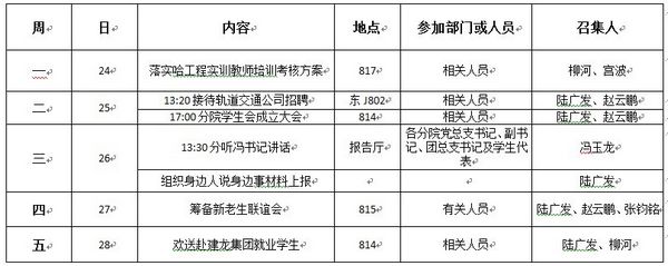 机械工程学院第八周重点工作推进表