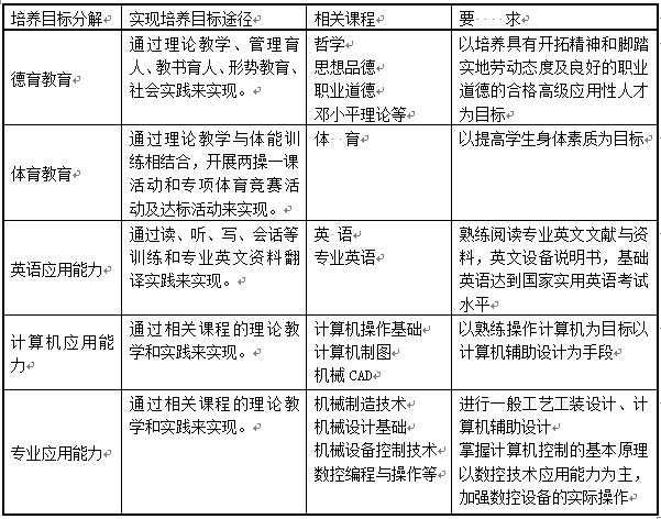 即按照机械制造及自动化专业发展方向和专业要求,建立了模块式理论教学体系。(详见附件一教学计划37页)