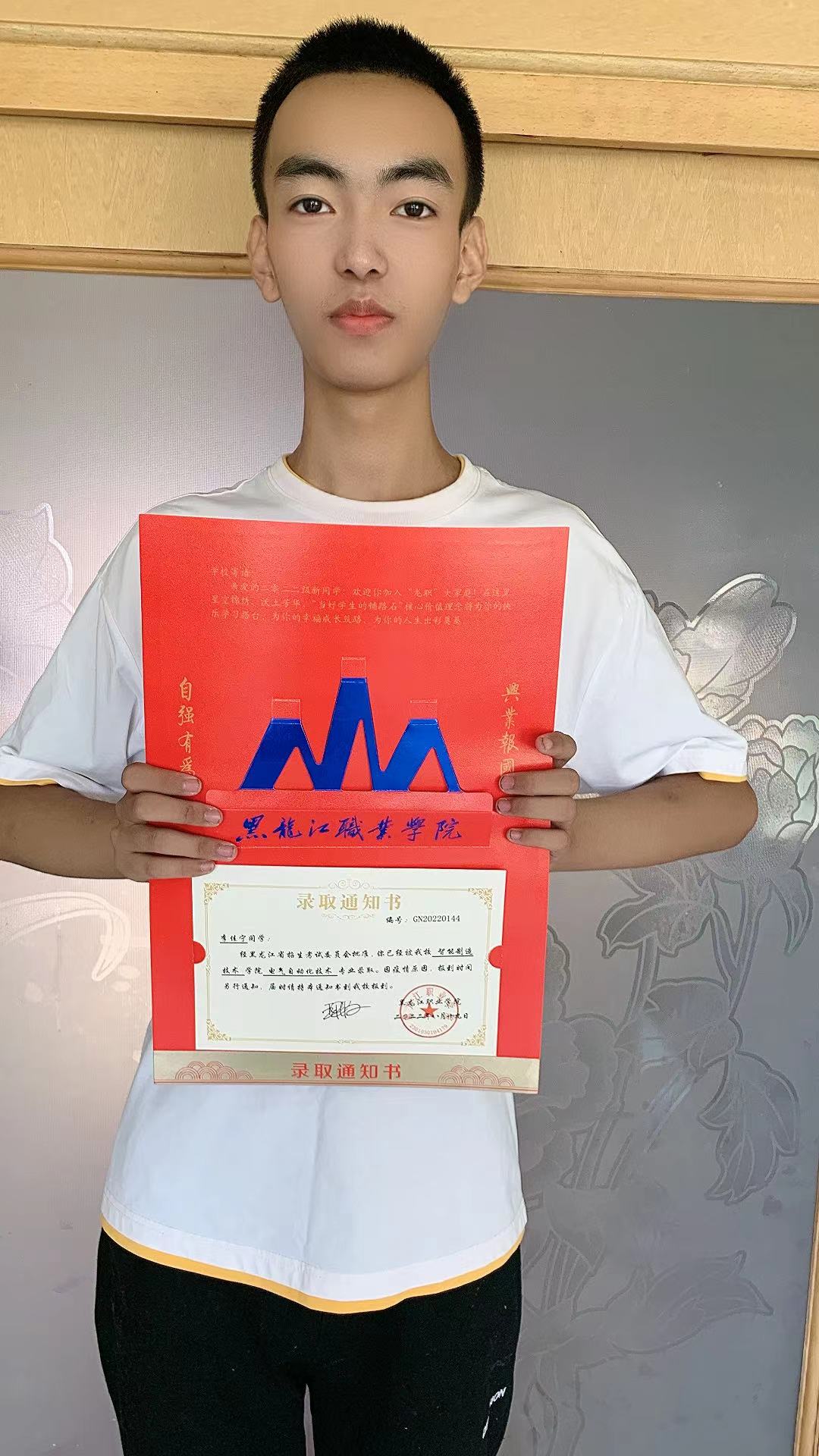 九月艳阳映照窗台,秋风伴着爽朗的空气,吹向承载多年奋斗和汗水的录取通知书,录取通知书属于努力的荣誉,同时也意味着新的开始!下面请大家一起欣赏智能制造技术学院2022级同学与录取通知书的故事: