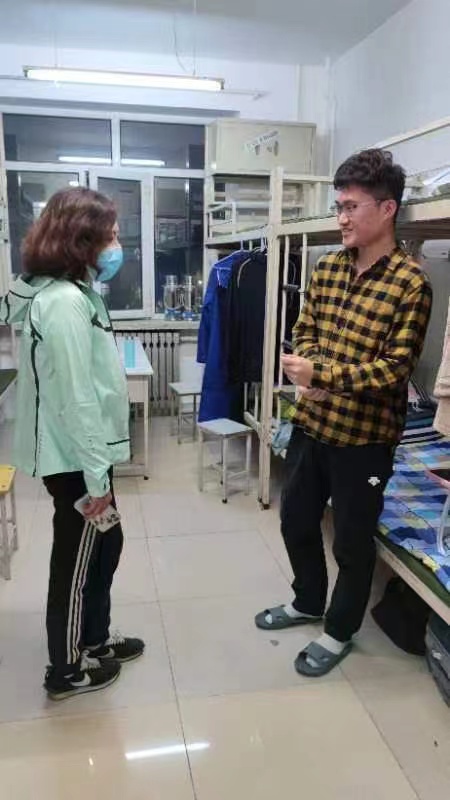 走访强意识,关怀送温情,为提高同学们在宿舍安全与防范意识,2022年9月30日,智能制造技术学院副院长杨书婕、辅导员尚天任一起走访我院学生寝室。