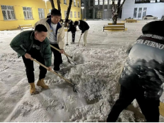 2023年3月15日受冷空气影响,哈尔滨出现降温、降雪天气,校园在一天之内银装素裹,道路被积雪覆盖。为保障同学们的通行安全和便利,确保环境整洁,智能制造技术学院组织2022级开展扫雪除冰行动。2022级辅导员们组织同学们迅速投入工作,扫雪除冰工作快速、高效地推进。大家手握铁锹、扫把将道路中央的积雪转移到两侧不妨碍通行的位置。