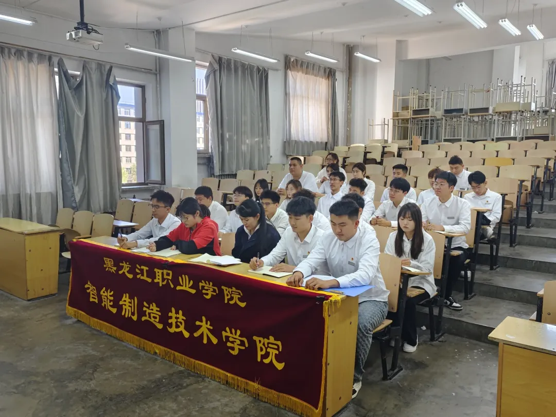介绍出席本次会议人员:智能制造技术学院团总支书记姜玲,团总支(教师)副书记韩玉,团总支学生副书记高彦琦,学生会主席陈明, 智能制造技术学院2023级学生会全体学生干部。