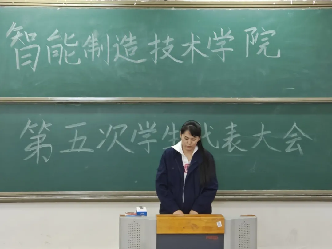 智能制造技术学院团总支书记姜玲发言致辞,并对本次学生代表大会的顺利召开表示热烈祝贺,并提出四点建议。一建议学生干部们提升组织协调能力、团队协作能力和沟通表达能力。二加强学生与学院之间的沟通,及时反应学生诉求。三在以后的活动中广泛吸纳学生意见,激发学生参与活动的热情。四学生干部规范自身行为,做好一个优秀的学生干部。