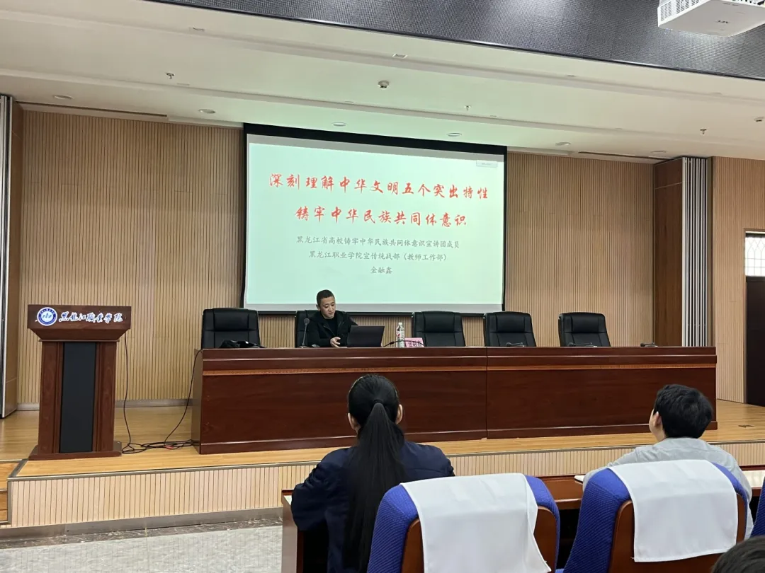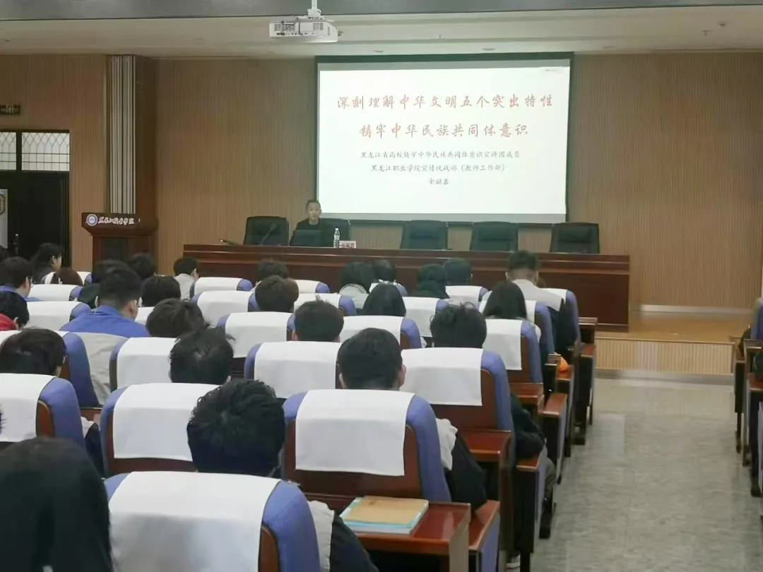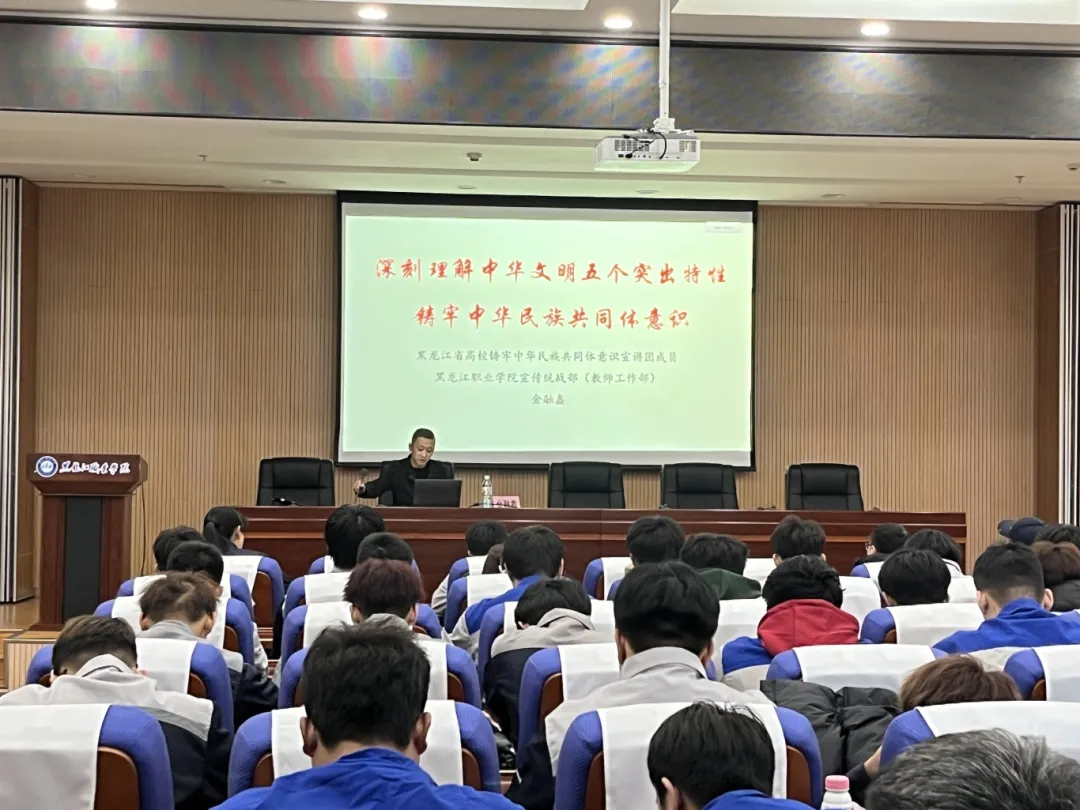 为了更好地理解和传承中华文明,于2024年11月27日下午14:00时在工匠楼1106会议室,开展深刻理解中华文明五个突出特性铸牢中华民族共同体意识讲座,此次讲座由宣传部副部长金融鑫主讲。