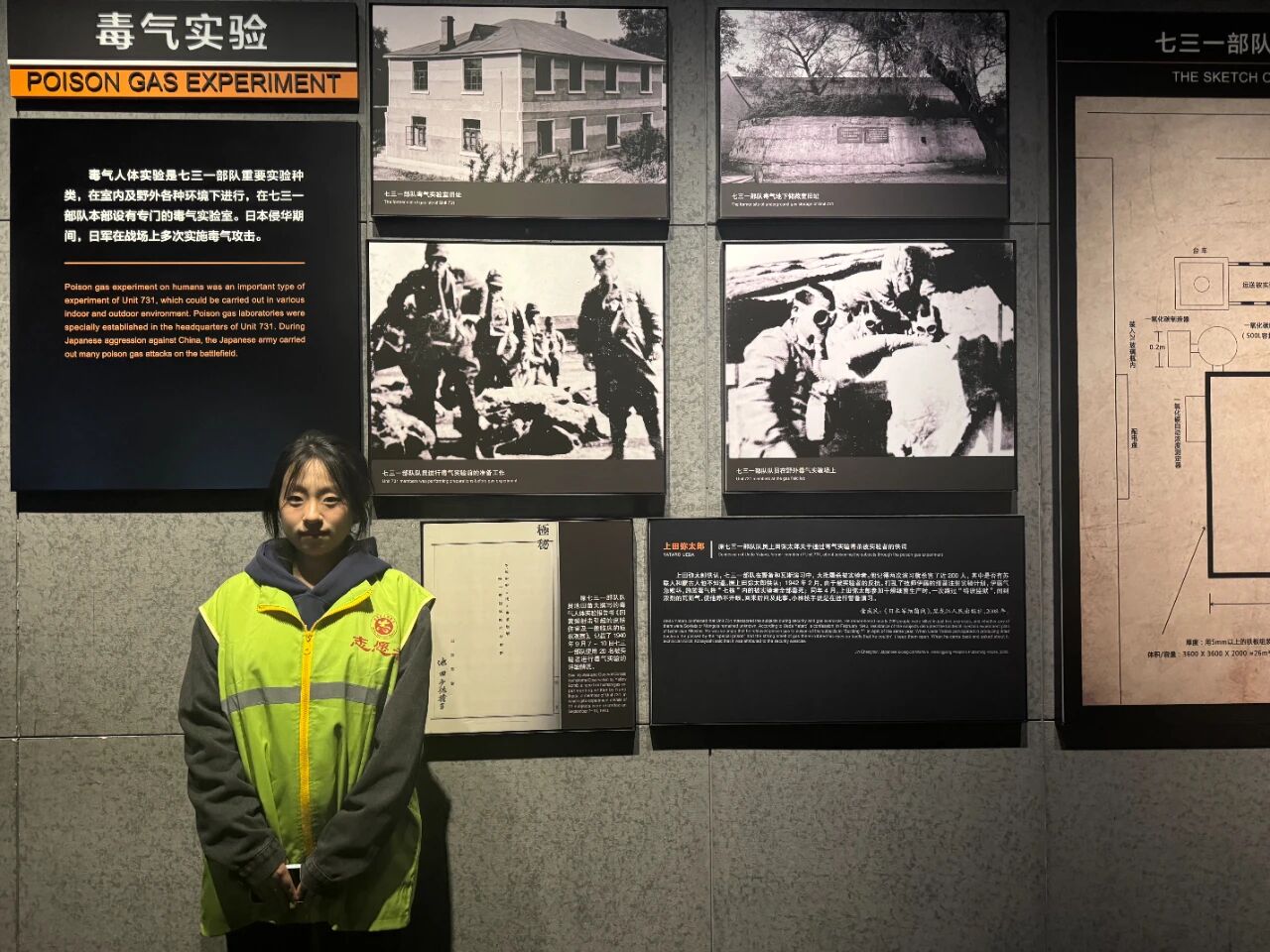 2025年9月24日上午8:30,社团联合会主席董轩阁、副主席朱泓及志愿服务部部长孙泽旭带队,17名同学共同参与侵华日军第七三一部队遗址第12期志愿服务。