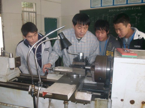 在四川的支教中,崔明老师老师做到一边讲一边操作,做到慢讲、细讲、反复讲、讲到每一个细节和重点应注意的问题,让学生听得懂,看得懂。在这些基础上,让学生亲自动手操作机床加工零件,自己在学生旁边耐心指导每一步的操作程序。要求每一位学生都能独立操作,指出学生在操作过程中产生的错误,最后,达到能独立加工完成零部件的制作。