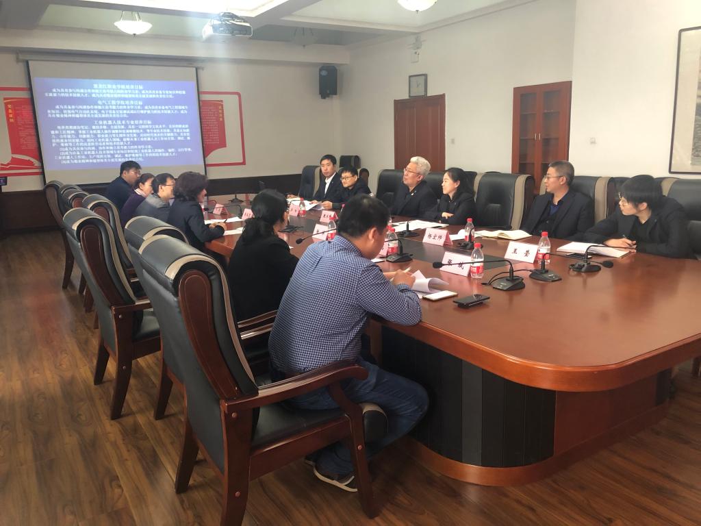 出席本次会议的有电气工程学院院长敖冰峰、哈尔滨职业学院电气工程学院院长雍丽英、哈尔滨工业大学机器人研究所副教授蒋再男、江苏汇博机器人技术股份有限公司黑龙江省区经理王英、山东栋梁科技设备有限公司区域经理张斌、437ccm必赢国际官方网站电气工程学院工业机器人技术专业教研室主任鲍敏及专任教师乔阳、杨宏帅、张祎玮、王莹。