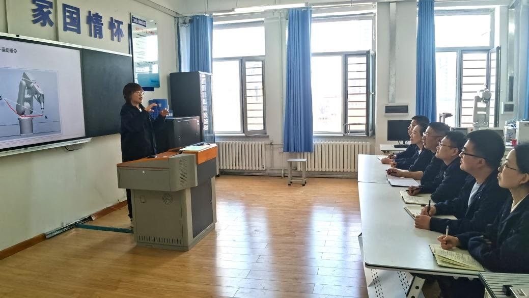 4月17日下午,工业机器人技术团队与杨宏帅技能大师工作室成员在工匠楼的工业机器人应用编程实训室,共同开展了一场专业教师说课活动。