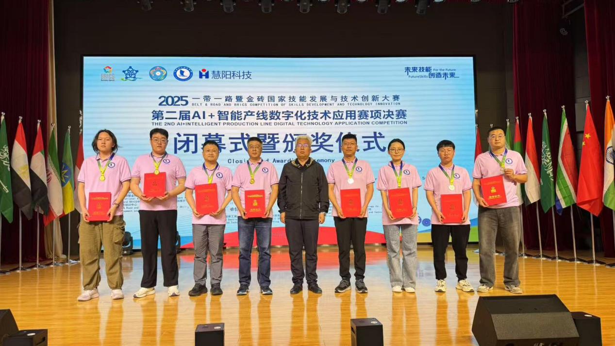 2025年6月13日至16日,2025“一带一路”暨金砖国家技能发展与技术创新大赛第二届AI+智能产线数字化技术应用赛项决赛在辽源职业技术学院盛大举行,赛事吸引了来自11个国家的125支参赛队伍,共计66所院校的249名选手同台竞技,必赢智能制造技术学院选派工业机器人技术专业师生团队,分别征战职工组与高校组竞赛。