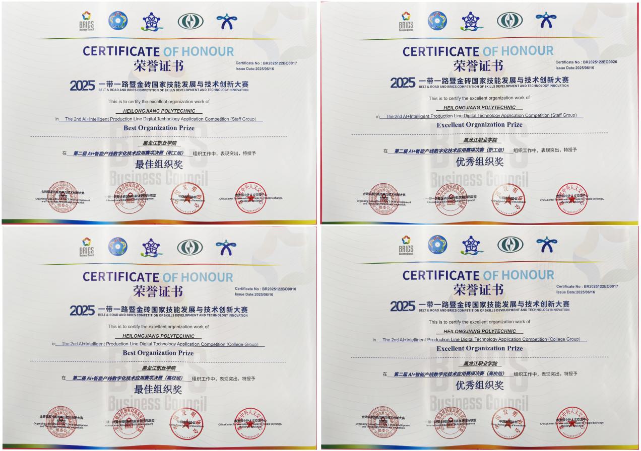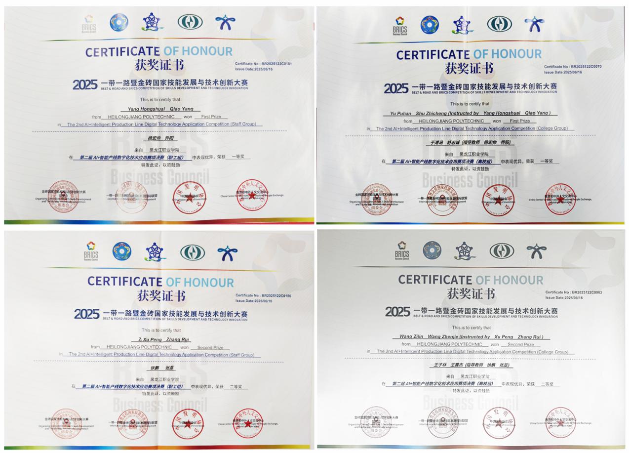 此次技能大赛取得的优异成绩,是对学校专业教学改革成果的有力验证,智能制造技术学院以竞赛成果为契机,聚焦数字经济、智能制造等重点产业方向,持续深化教育教学改革,推进人工智能赋能职业教育高质量发展,打造国际化师资队伍,培养兼具扎实专业知识与精湛实操技能的国际化高素质技术技能人才,为龙江构建“4567”现代产业体系、推动产业升级和经济高质量发展注入源源不断的人才动力。
