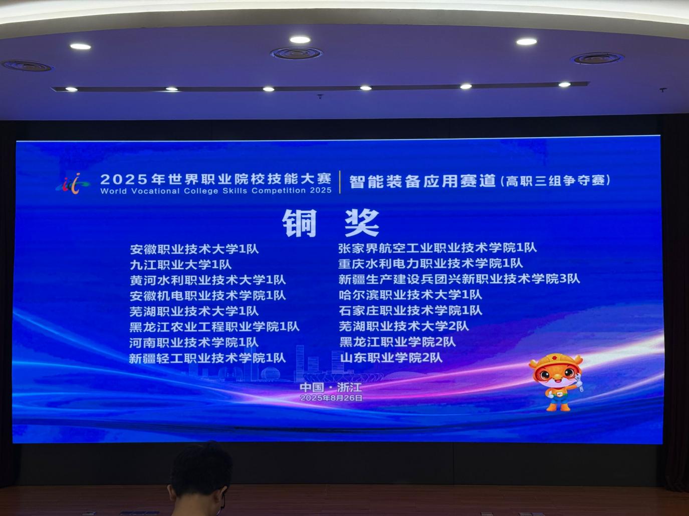 8月20日至26日,2025年世界职业院校技能大赛总决赛在浙江杭州开赛。437ccm必赢国际官方网站智能制造技术学院学子捷报频传,在智能装备应用赛道斩获两项铜牌,尽显龙江职教风采。