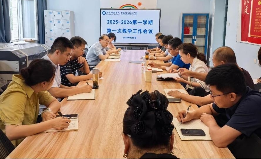 2025年9月3日,智能制造技术学院召开2025-2026学年第1学期第一次教学工作会议,院长李子峰、副院长于雪梅、鲍敏,教学办主任薛文,各专业主任、技能大师参会。
