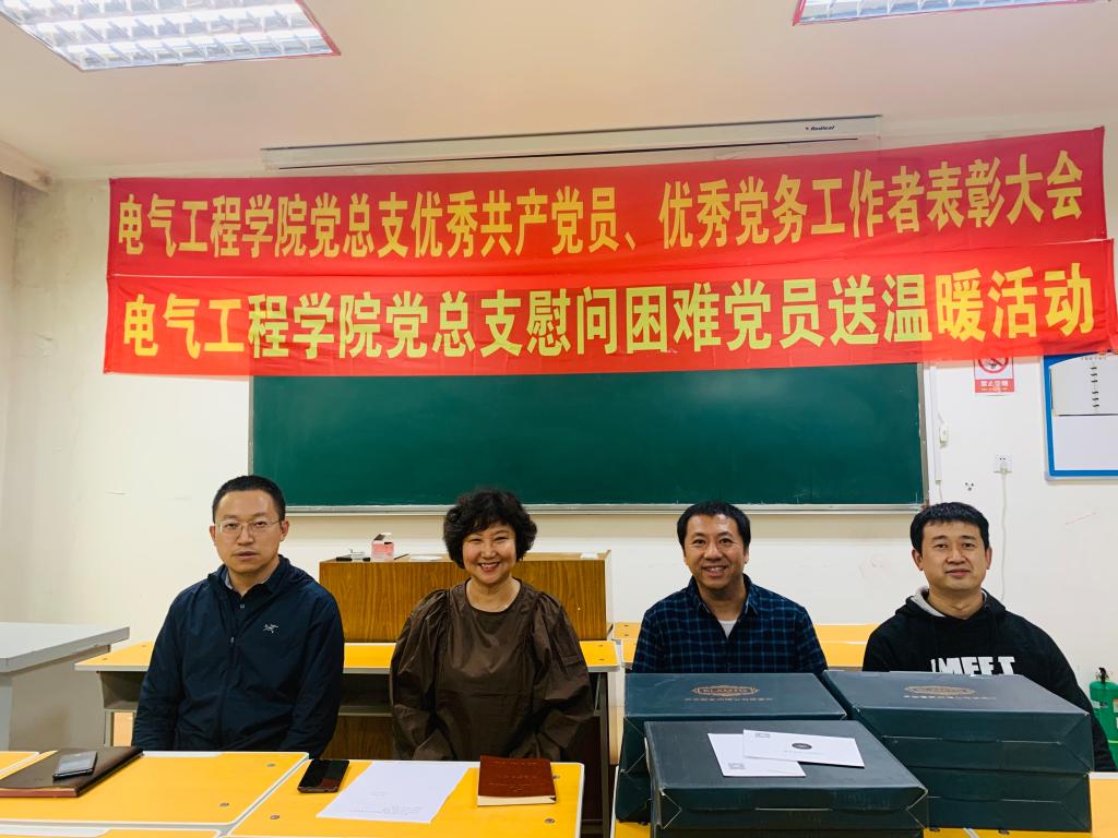 2020年9月18日,电气工程学院在工匠楼301室举行了,优秀党员、优秀党务工作者的表彰和困难党员慰问的活动。电气工程学院党总支对教工党支部和学管党支部的全体共产党员进行了党员自评、群众测评、党内互评、党支部评议等工作,经过严格考核和公开评议,经过各党支部推荐、测评,经党总支上报,校党委研究批准,王莉、姜玲、黄雨鑫3人获得优秀共产党员称号;田浩鹏、王强获得优秀党务工作者称号。