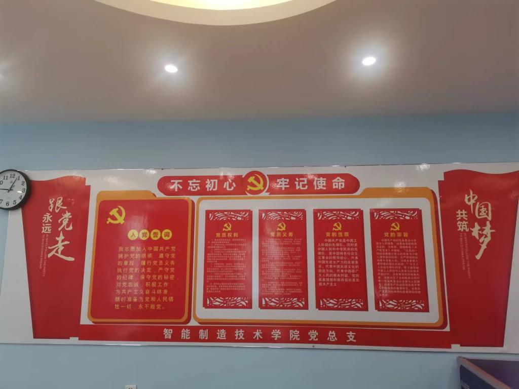 智能制造技术学院党总支为全面深入学习贯彻习近平新时代中国特色社会主义思想,贯彻党的十九大和十九届历次全会精神,突出迎接宣传贯彻党的二十大这条主线,学用新思想,践行新担当。精心设计、丰富内容,发挥阵地教育性和展示性功效,从宏观到微观、从理念到时间、从战略到策略,扎实做好宣传,全面营造党建引领的浓厚氛围。把宣传展板打造为深化学习教育、展示党组织风采、凝聚人员力量、推动廉洁从业的阵地,强化党建宣传广度和力度,助推党建工作高水平发展。