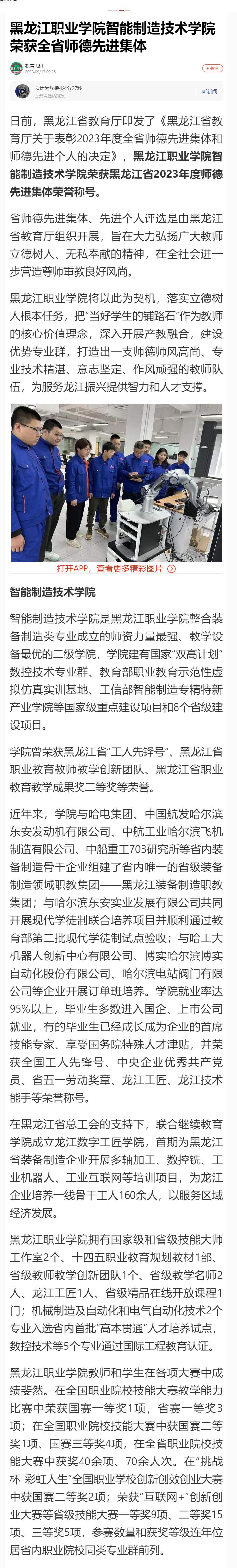 【搜狐新闻】437ccm必赢国际官方网站智能制造技术学院荣获全省师德先进集体