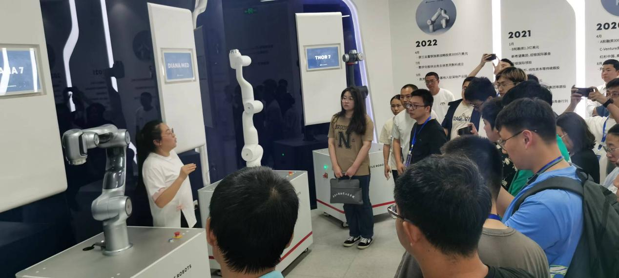 此次参观学习活动学员们认识了协作机器人的功能特点以及在康养、医疗、电力巡检等方面的应用,动手操作和实践认知,学员与企业人员深入交流,了解数字技术、智能产业的魅力。