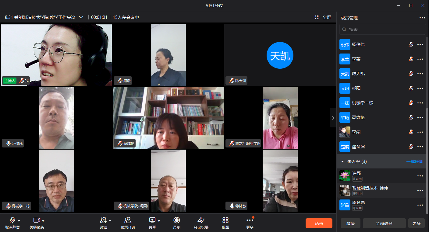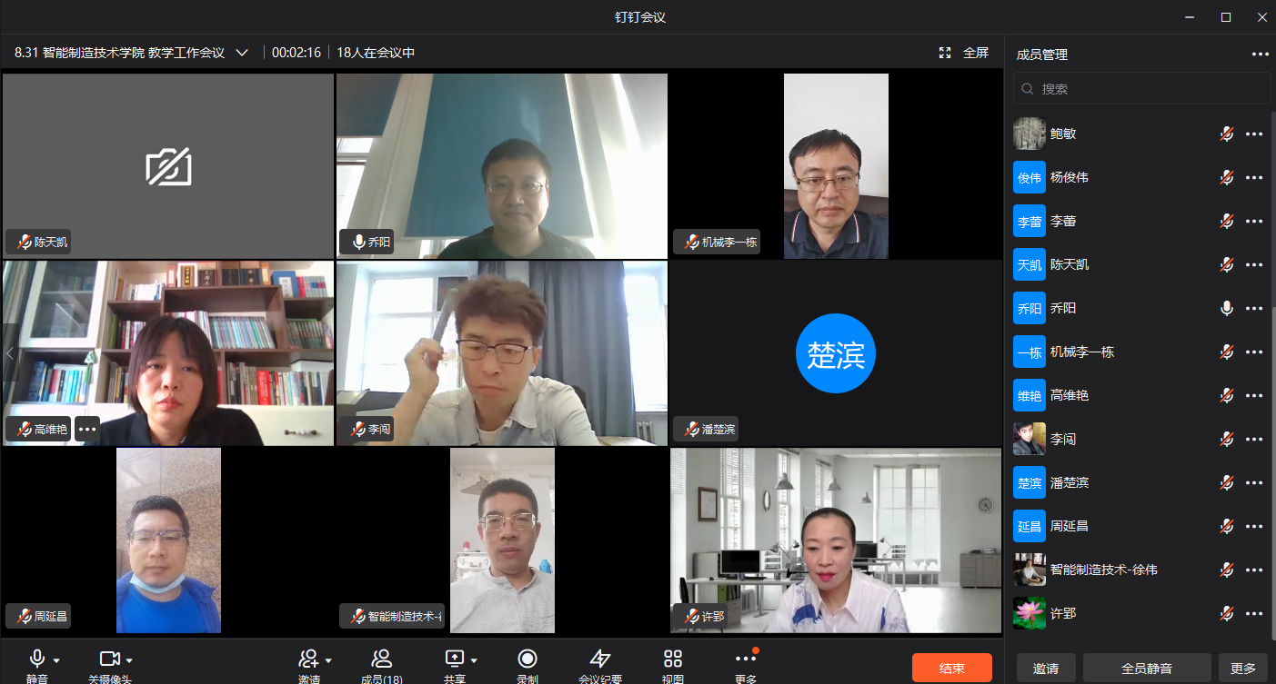 2022年8月31日智能制造技术学院召开教学工作线上会议,教学副院长杨书婕、鲍敏,全体教研室主任都参加了会议。在会议上两位教学院长就近期的工作做了总结,对本学期的接下来的工作做了部署。