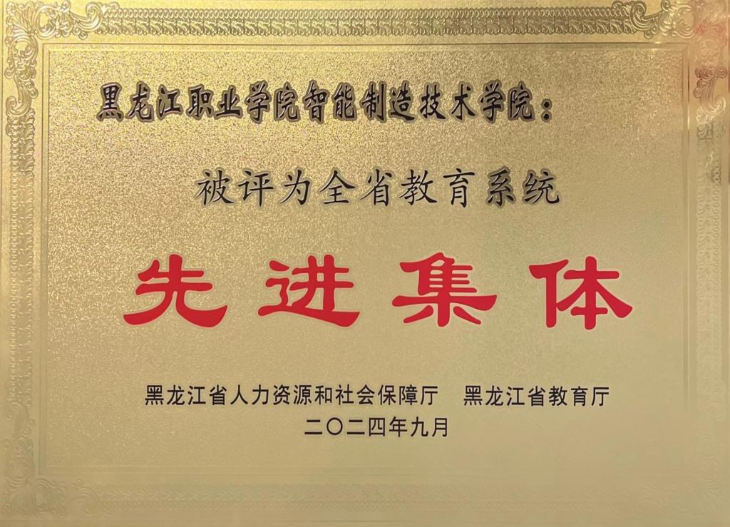 近日,黑龙江省人力资源和社会保障厅、黑龙江省教育厅发布了《关于表彰全省教育系统先进集体和先进个人的决定》,必赢智能制造技术学院被授予“2024年全省教育系统先进集体”荣誉称号。