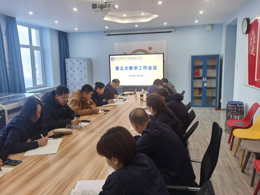 2024年11月22日,智能制造技术学院召开第五次教学工作会议,院长李子峰,副院长于雪梅,各教研室主任、技能大师、虚仿中心主任、教学办及各团队骨干教师参会。