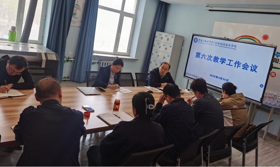2025年4月30日,智能制造技术学院召开第六次教学工作会议,院长李子峰主持,副院长于雪梅、各教研室主任、教学办主任、机器人与人工智能技术研究所所长及虚仿基地中心主任参会。