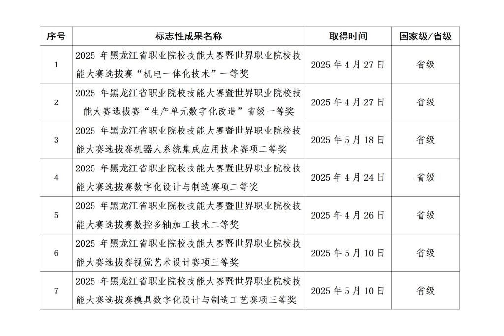 截止至2025年6月19日,本年度黑龙江省职业院校技能大赛基本落幕,经过各位参赛师生的激烈角逐,智能制造技术学院取得了丰富的成果,共获得省级一等奖2项,省级二等奖3项,省级三等奖2项的好成绩,以上成果为国家第二轮双高、省第三轮双高建设提供了有力支撑。本次参赛经历也极大提高了参赛选手的实操技能与解决问题的能力,为我院学生高质量就业奠定良好基础。