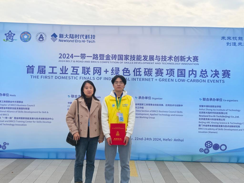 2024年11月23日,一带一路暨金砖国家技能发展与技术创新大赛首届“工业互联网+绿色低碳”赛项国内总决赛在安徽中澳科技职业学院举办。此次大赛吸引了全国52所高职院校的85支参赛队伍,经过线上预赛与线下决赛的激烈比拼,必赢智能制造技术学院董欣教师指导的工业互联网应用专业孙明显同学荣获三等奖。