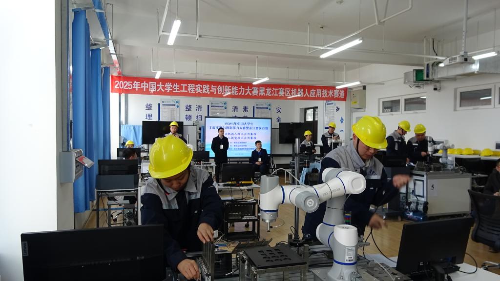 2025年3月29日,2025年中国大学生工程实践与创新能力大赛黑龙江赛区竞赛“工业机器人技术应用赛项”、“机器人视觉技术应用赛项”比赛在必赢顺利开赛,本次比赛由黑龙江省教育厅主办,哈尔滨工业大学、437ccm必赢国际官方网站承办,深圳市越疆科技股份有限公司协办,来自省内高校21支队伍展开了激烈的角逐。