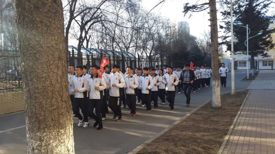 每天的早操于早晨6:10集合完毕后出发,我与所带班级的同学们并肩齐行,跑早操的方式带动同学们锻炼身体磨练意志,增强同学们的集体荣誉感和竞争意识。整齐的步伐、响亮的口号体现当代大学生无往不胜所向披靡的气魄。