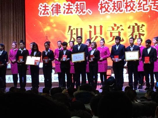 参加“法律法规、校规校纪”专题的知识竞赛。践行“依法治国、依法治校”的理念,通过带领学生参与大赛,体验了大赛的紧张气氛,学习了法律法规校规的相关知识,培养学生的竞争意识。