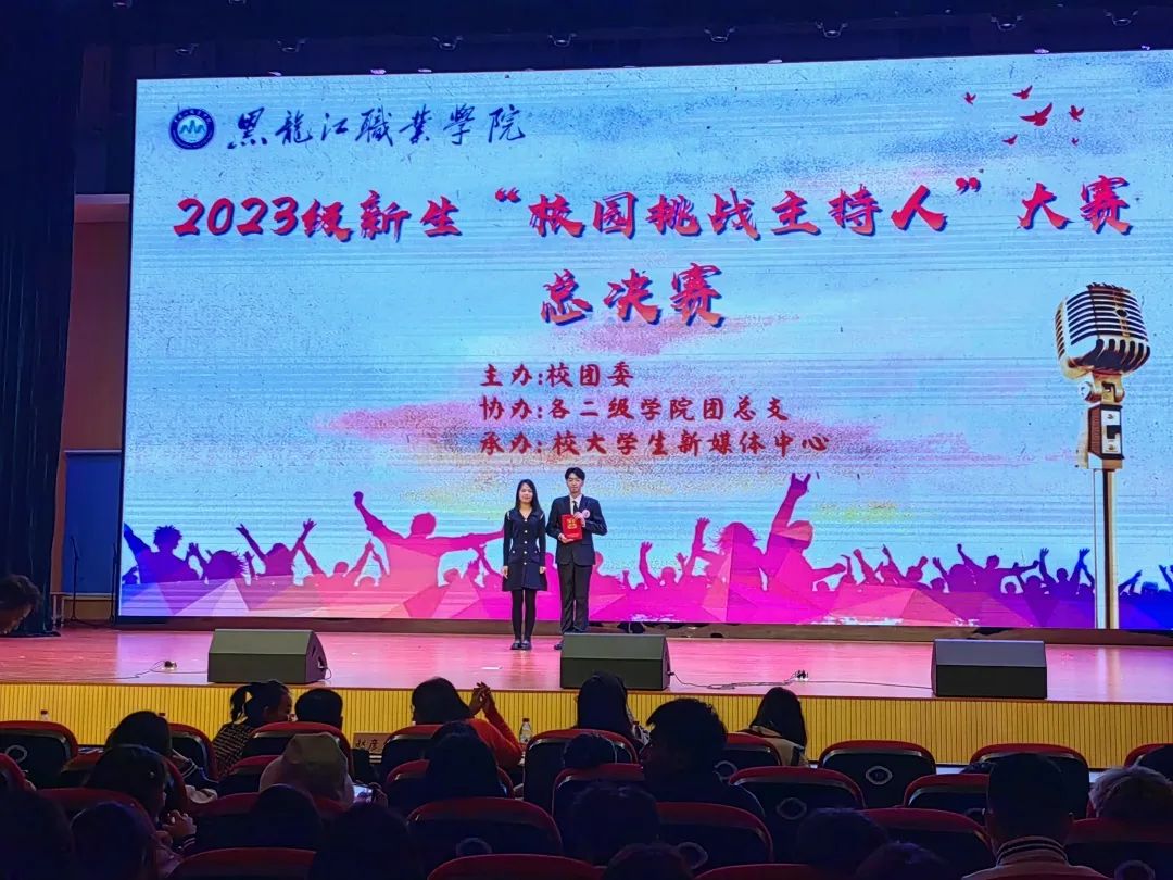 青春有我,为梦发声,2023年11月13日下午17:30时,智能制造技术学院团总支副书记王嘉淋,带领吉鹏宇、徐伟涵、隋智玥三名同学参加由校团委举办的“校园挑战主持人”大赛决赛。