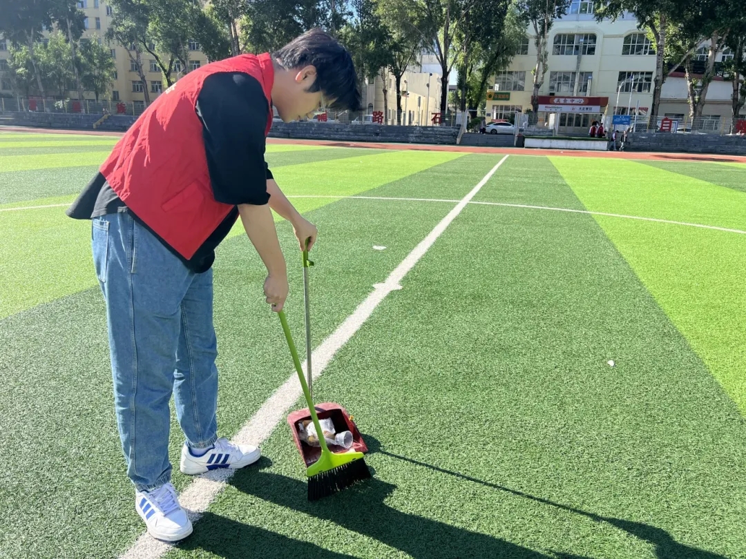 于当晚8:40分,我们再次在清华楼下集合,对操场进行二次清扫与检查。大家确保每一个角落都清洁干净,不留任何死角。让我们携手共进,为全校师生创造一个干净、整洁的操场环境,为学校的环境建设贡献我们的青春力量。让我们共同为美好的校园环境努力!