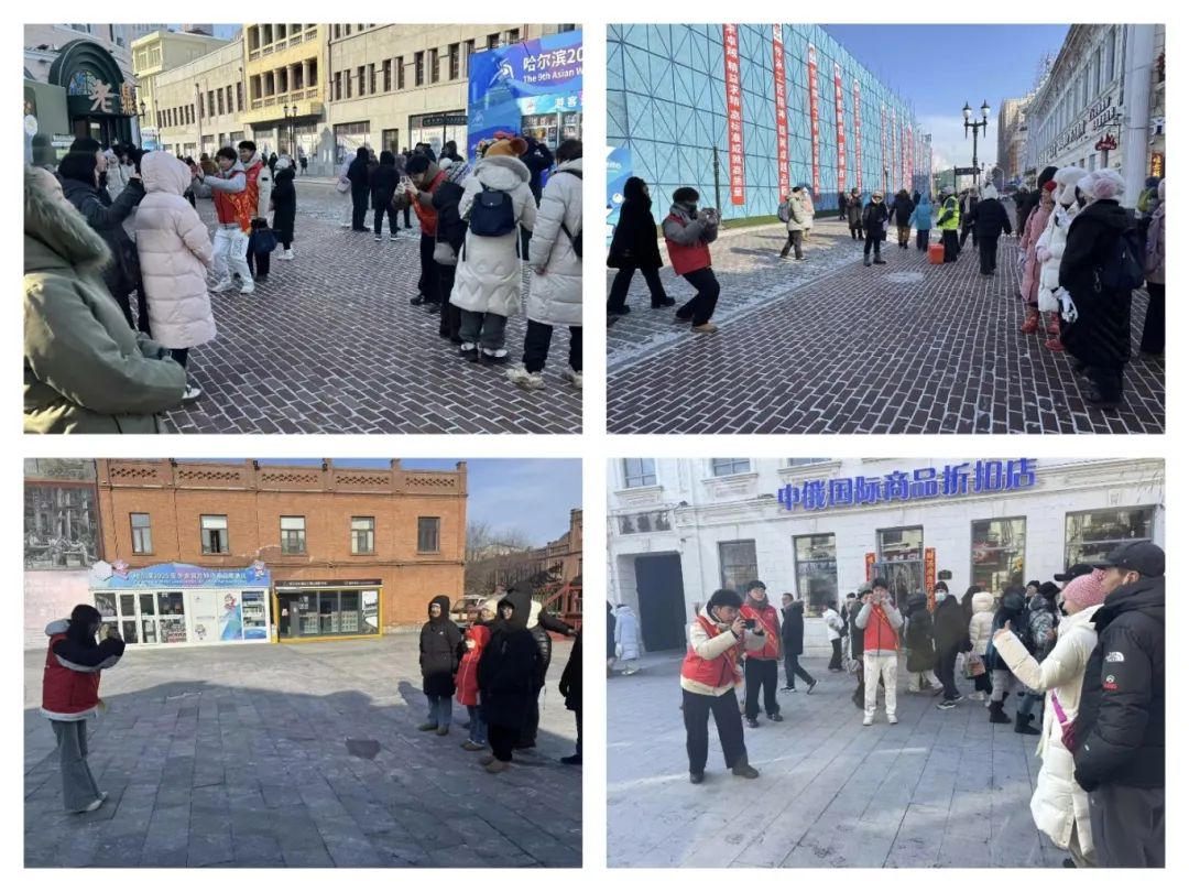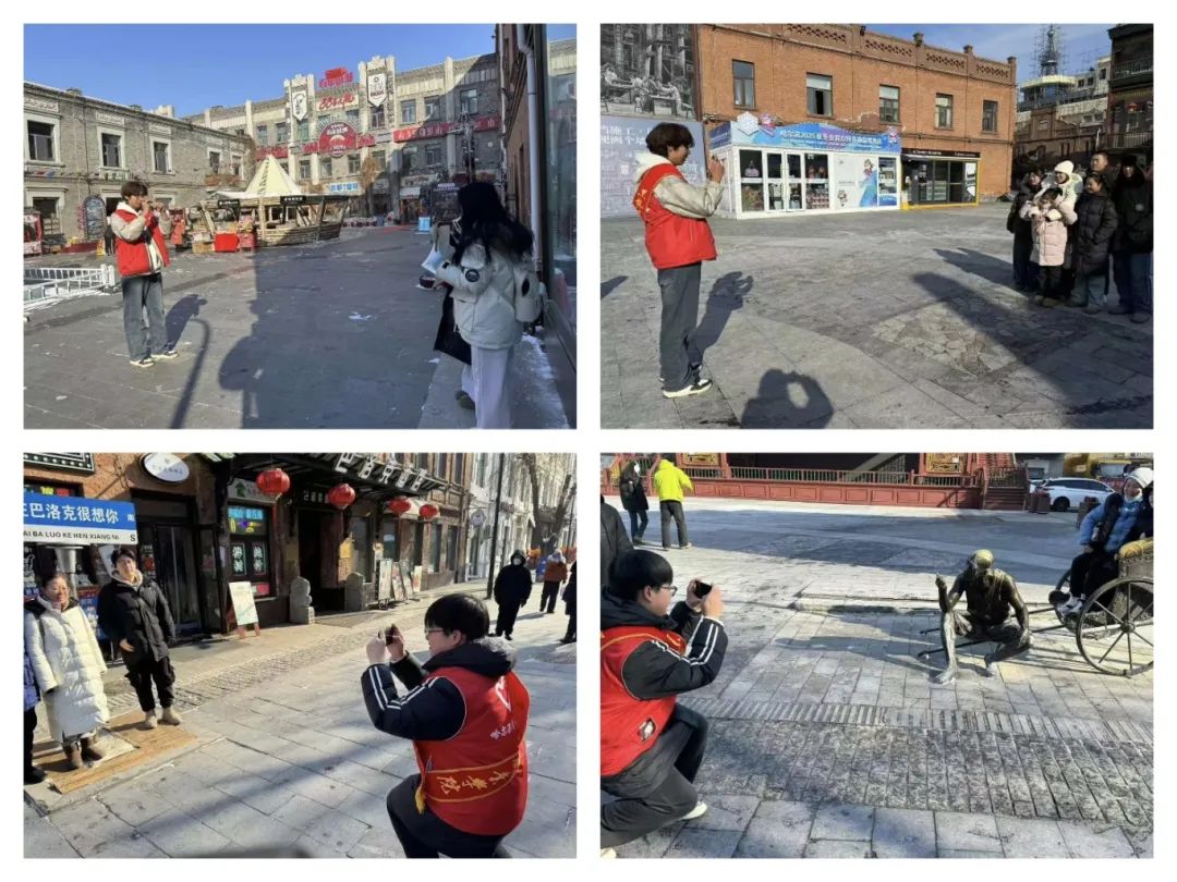 在志愿服务中,同学们在青年之家给外地游客提供免费热水、提供热帖、暖足贴和咨询各种场地的游客指路。并且在巴洛克南三道街景区内给游客指明各个景点的位置,帮助游客进行合照。